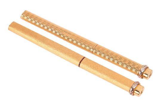 Two Must De Cartier pens, both of textured design with trinity accents to the covers, one boxed.
