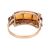 A citrine three-stone dress ring, channel-set with three square table-cut citrines, between volute shoulders to a flat shank, in yellow metal stamped ‘333’, size R, 3.4 grams.