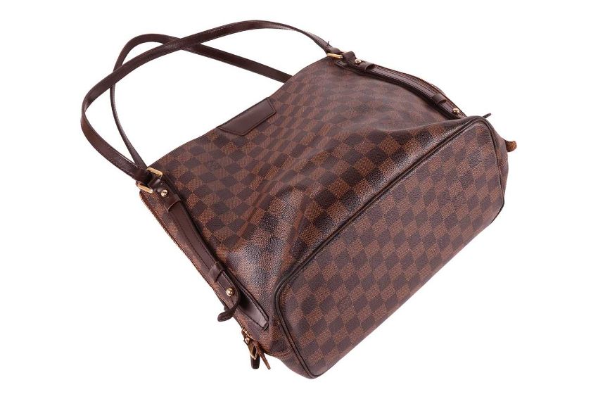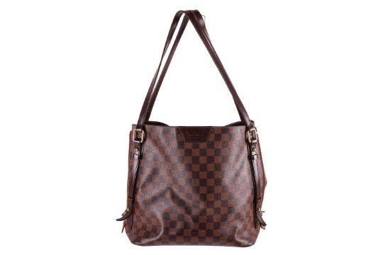 Louis Vuitton - a Cabas Rivington tote in Damier Ebene coated canvas, bucket shape with zipper gussets, lined with red canvas and equipped with two leather straps, gold-tone hardware. W28 x H28 x D15 cm.
