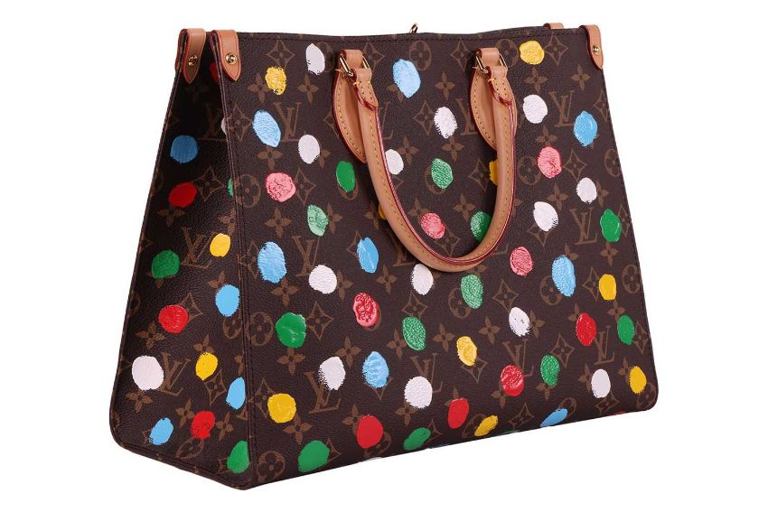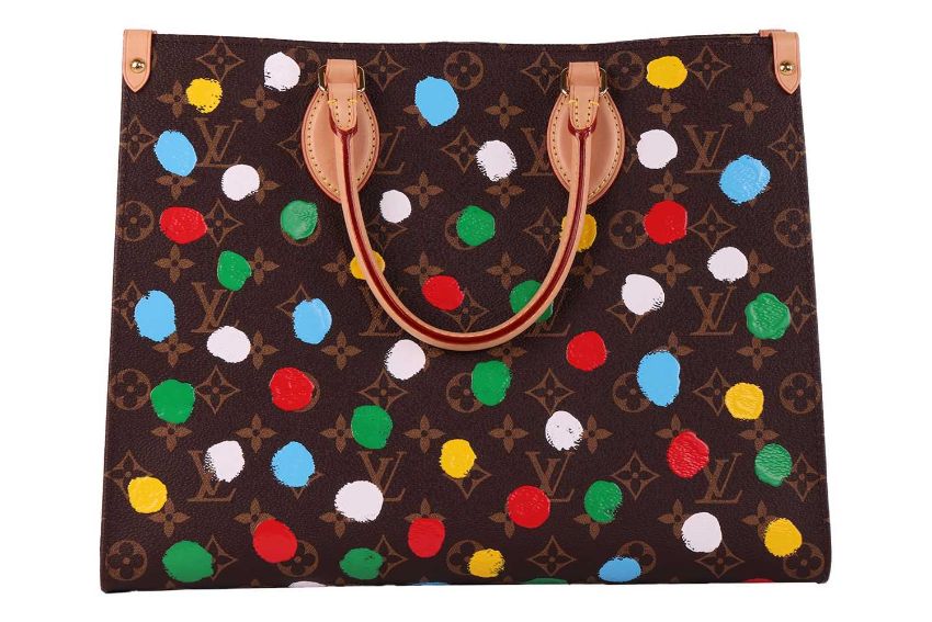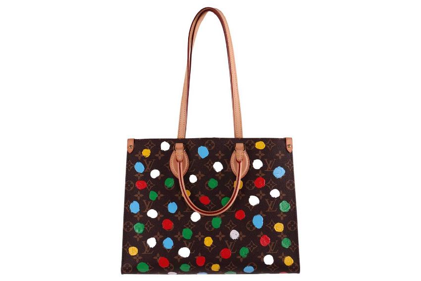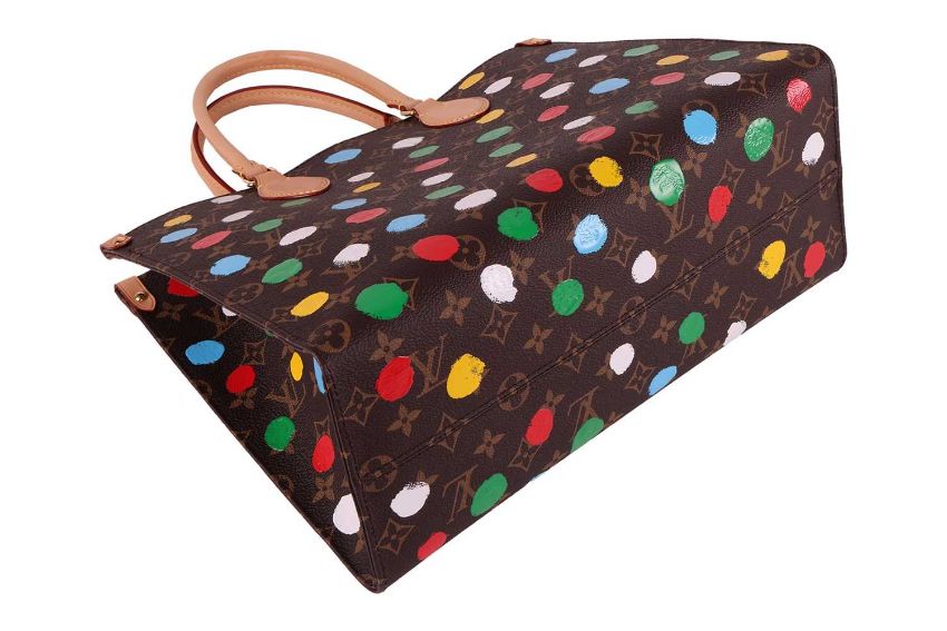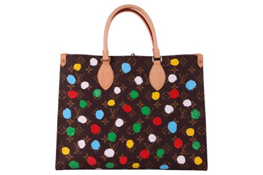 Louis Vuitton X Yayoi Kusama - 'Infinity dots' On the Go MM, circa 2023, multicoloured dots on brown monogram coated canvas, with tanned leather trims and rolled top handles, gold-toned hardware.W33 x H26 x D15 cm.