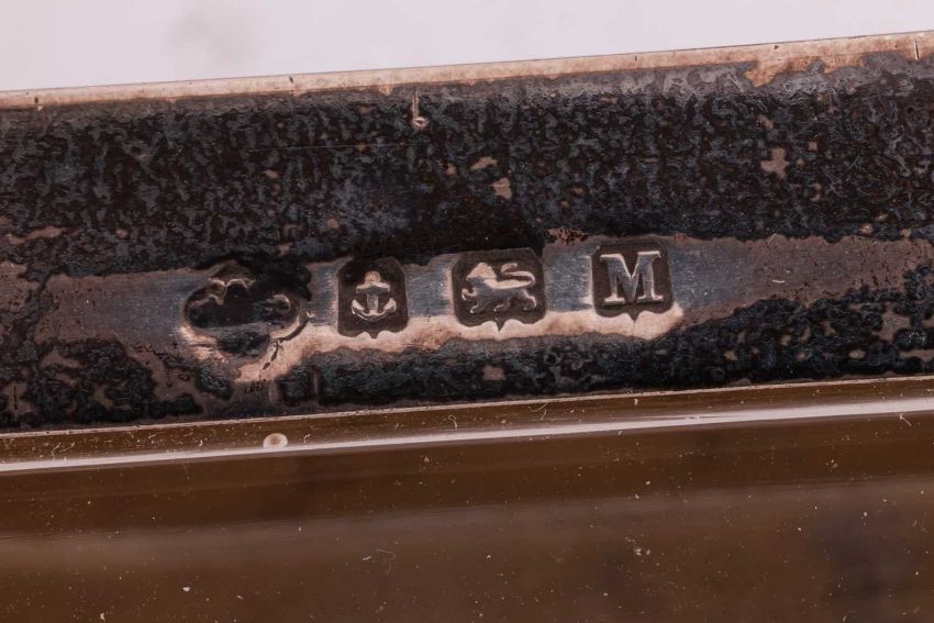 A collection of silver items; to include a large round pressed glass jar, silver mounted tortoiseshell cover with pique garland decorations, by Docker & Burn, Birmingham 1921; a silver trinket box in the form of a miniature vanity desk, hinged cover with pique work on tortoiseshell inset, open to reveal lined interior, by Charles & Richard Comyns, London 1915; a silver mounted glass tyg by Henry Bourne, Birmingham 1907; a silver mounted glass jar, with blue guilloché enamel cover, Birmingham 1936; a pair of George IV silver sugar tongs; a Chinese export white metal miniature sedan chair by Wang Hing; and a Russian niello salt cellar on three ball feet; Total weighable 7.94 ozt. (7)