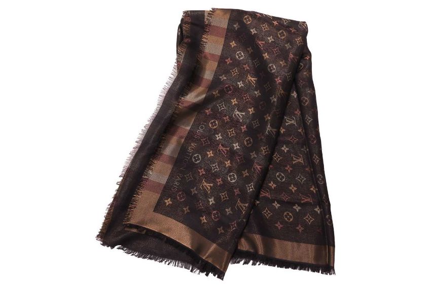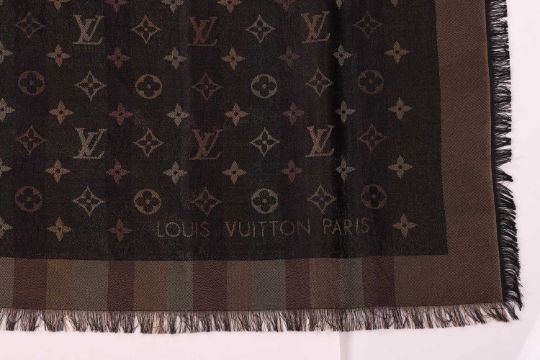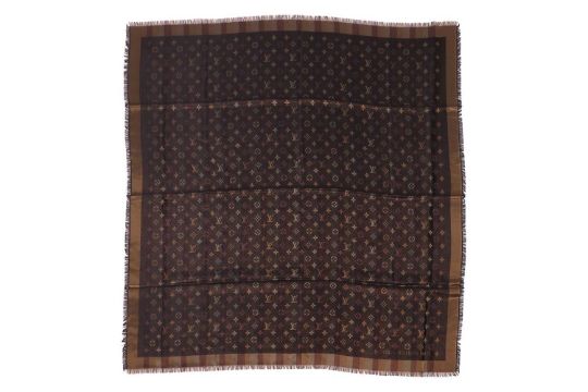 Louis Vuitton - a large So Shine monogram shawl, jacquard weave in brown tones, 142.5 x 142.5 cm.