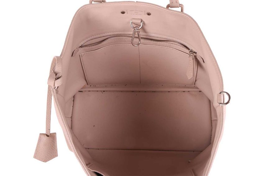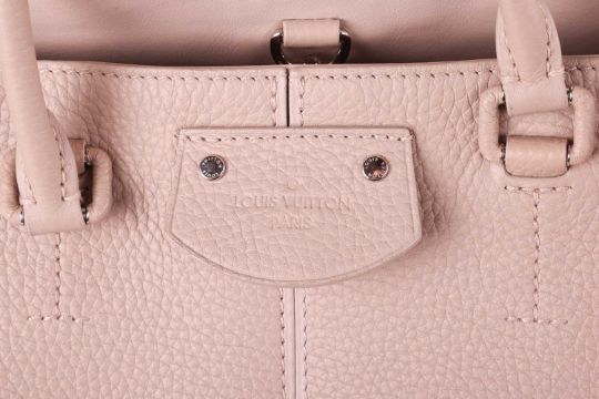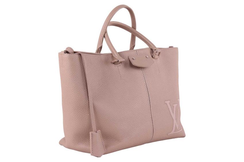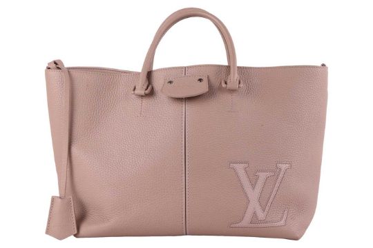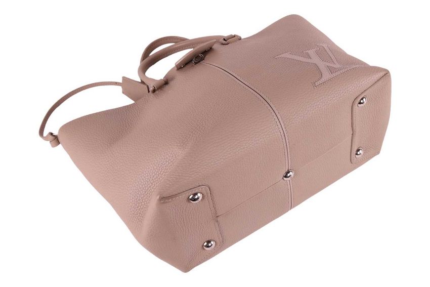Louis Vuitton - a Pernelle shopper tote in beige galet taurillon leather, featuring an applique LV signature at the bottom corner, locket front pocket, leather lined, equipped with two rolled top handles, silver-tone hardware, studs on the bottom. 2018. W31 x L25 x D15 cm.
