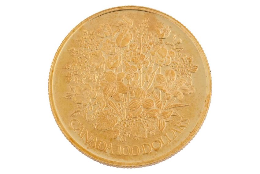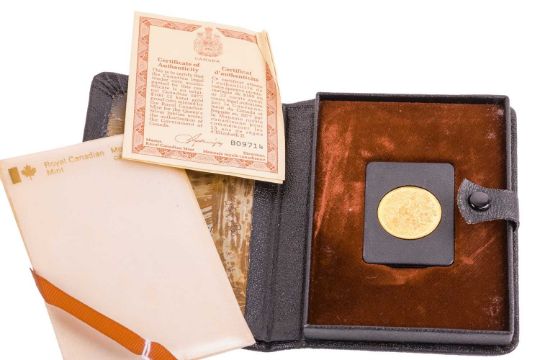 Royal Canadian Mint, 1977 $100 gold proof coin, 16.9g, limited edition numbered B09714, in original presentation box and with paperwork.