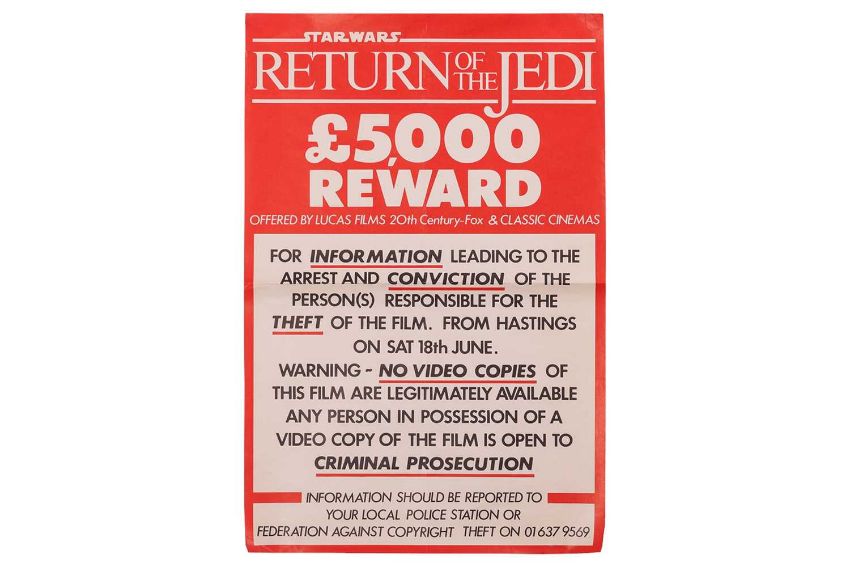 Anti-piracy poster issued by Lucas Films, Twentieth Century Fox, and Classic Cinema to combat video piracy.