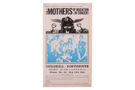 Six flyers for The Mothers of Invention in Concert at the Guildhall Portsmouth on the 5th of June, 10 x 5 ½ inches.