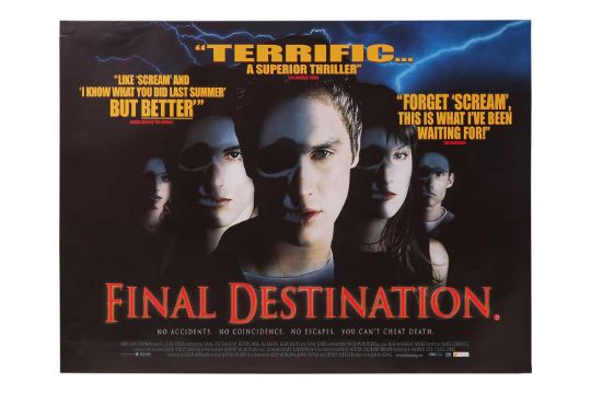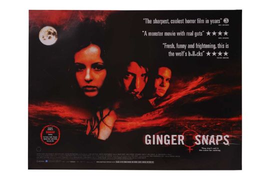 British Quads: The Sixth Sense (1999), double sided, teaser; Psycho (1998); 28 Days (2002), double sided; Jeepers Creepers (2001), double sided; Ginger Snaps (2000), double sided; Fallen (1998), double sided; Final Destination (2000), Devil's Advocate (1997), double sided; The Devil's Backbone (2001); The Addiction (1995); American Psycho (2000); Blair Witch Project (1999), teaser, double sided; Blair Witch Project (1999), double sided; Bring Out The Dead (1999), double sided, all rolled, all 30 x 40 inches