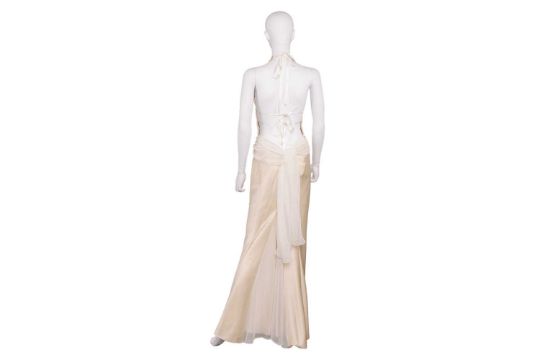 Anthea Turner – Tortoise two-piece cream evening wear, the skirt featuring lace and diamanté detail, Size UK 10.