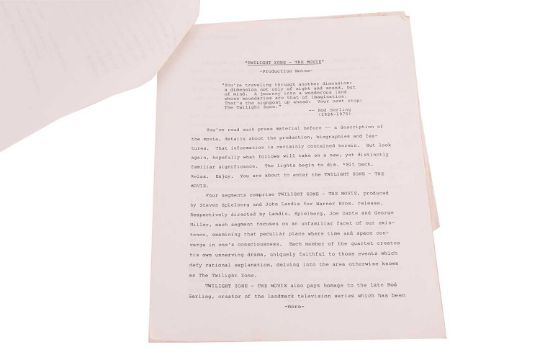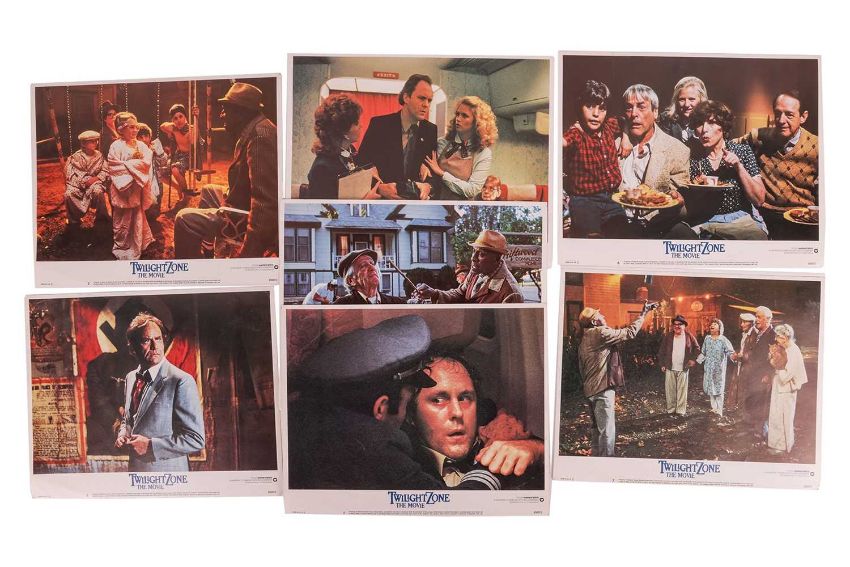 Innerspace (1987) seven press stills all linen backed, measuring 11 x 8 inches except one which measures 10 x 8 inches and is not backed on linen; Twilight Zone: The Movie (1983) production notes with biographies including Steven Spielberg and others; a set of 8 Lobby cards 14 x 11 inches; six photographs including an image of Steven Spielberg on the set of The Colour Purple (1985); two press stills of Joe Dante and Michael Finnell on the set of Gremlins 2 (1990) and three others;