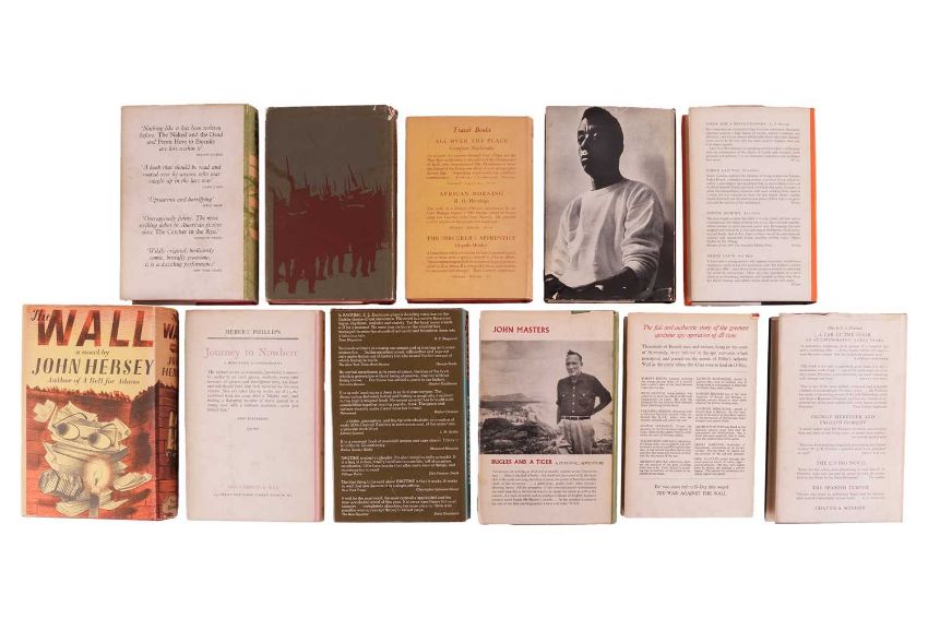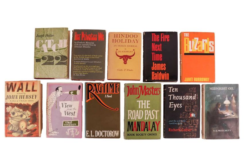 MANNING (Frederic). Her Privates We, reprint, 1930; HERSEY (John) The Wall, 1950; ACKERLEY (J.R.). Hindoo Holidays: An Indian Journal,1952; COLLIER (Richard) Ten Thousand Eyes,1958; MASTERS (John) The Road Past Mandalay, 1961; COCKBURN (Claud) View from the West, 1961; JOSEPH (Michael) The Fire Next Time, 1963; BURROWAY (Janet) The Buzzards, 1970; PRITCHETT (V.S.) Midnight Oil, 1971; and DOCTROW (E.L.) Ragtime, Macmillan, 1976; 8vo. (11)