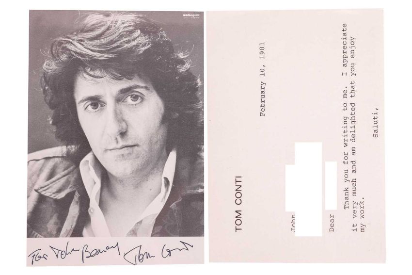 Tom Conti, Signed photograph and Typed Letter Signed, dated February 1981.