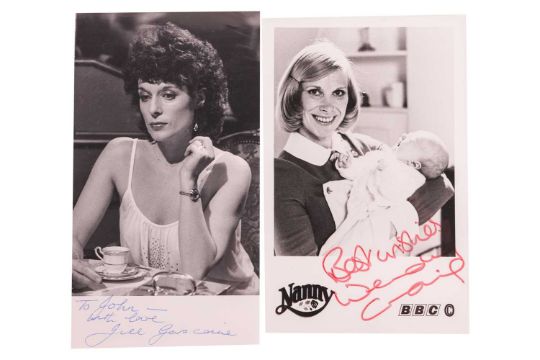 Gayle Hunnicutt, two unsigned photographs and handwritten note on single sheet sent on her behalf by Pauline Warburton, 1981. (50+)
