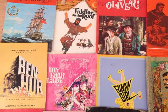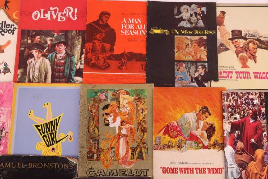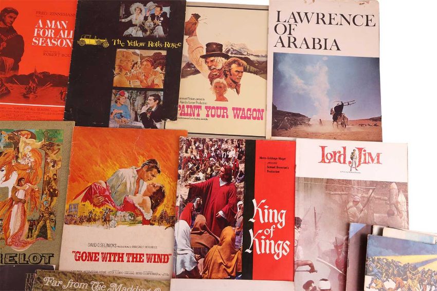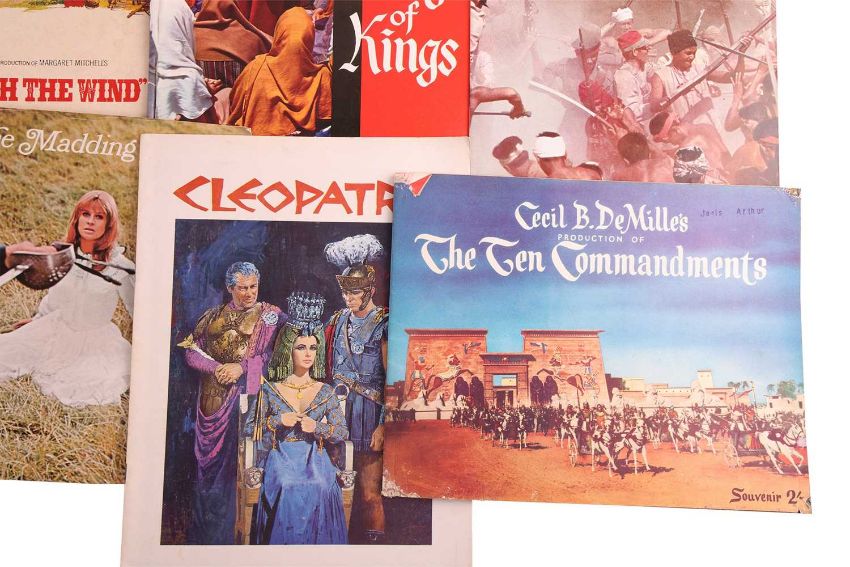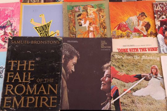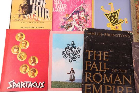 Gone With The Wind (1939), Australian souvenir programme; Camelot (1967), US souvenir programme; Funny Girl (1968), British souvenir programme; My Fair Lady (1964), British souvenir programme; Lawrence of Arabia (1962), Australian souvenir programme; South Pacific (1958), souvenir programme; The Sound of Music (1965), British souvenir programme; Spartacus (1960), souvenir programme, Mutiny on the Bounty (1962), British souvenir programme; Ben-Hur (1959), British souvenir programme; Cleopatra (1963), British souvenir programme; The Ten Commandments (1956), Australian souvenir programme; The Great Escape (1963), souvenir programme; Far From The Madding Crowd (1967), British souvenir programme; Lord Jim (1965), souvenir programme; King of Kings (1961), British souvenir programme; Star (1968), British souvenir programme; The Carpet Baggers (1964), souvenir programme, 2001: A Space Odyssey (1968), British souvenir programme; The Fall of The Roman Empire (1964), souvenir programme; The Lion In Winter (1968), souvenir programme; Paint Your Wagon (1969), souvenir programme; The Yellow Rolls-Royce (1964), Australian souvenir programme; A Man For All Seasons (1966), souvenir programme; Oliver! (1968), souvenir programme; Fiddler on the Roof (1971), British souvenir programme; together with, E.T. The Extra-Terrestrial Storybook by William Kotzwinkle, paperback, first edition, Sphere Books Ltd, 1982. (27)