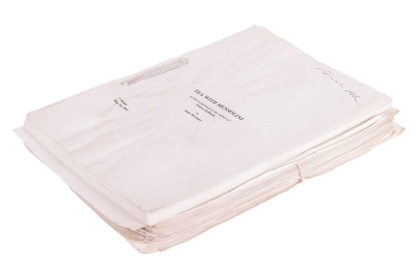 Tea with Mussolini (1999) Original Production Script, First Draft, dated May 19, 1997, based on the memoir of Franco Zeffirelli by Jack Mortimer, Signed by Angela Allen in blue ink on first page, 100-pages on white sheets, 21 x 30cm.