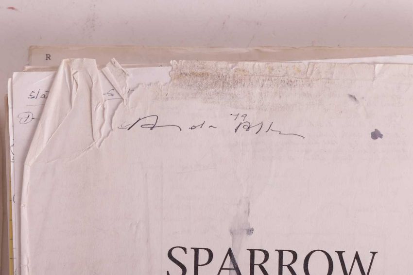 Sparrow (1993) Original Production Script by Allan Baker and Franco Zeffirelli, based on the novella ‘Storia di una capinera’ by Giovanni Verga, Signed by Angela Allen, unbound, 102-pages on white sheets, extensively annotated by Angela in ink throughout, 22 x 30cm; together with, a Call sheet, Signed in blue ink by Angela Allen, Italian and English text, dated 31 Maggio 1993; together with, a small group of Daily Production Information and Sequence Order sheets, May-June 1993. (2)