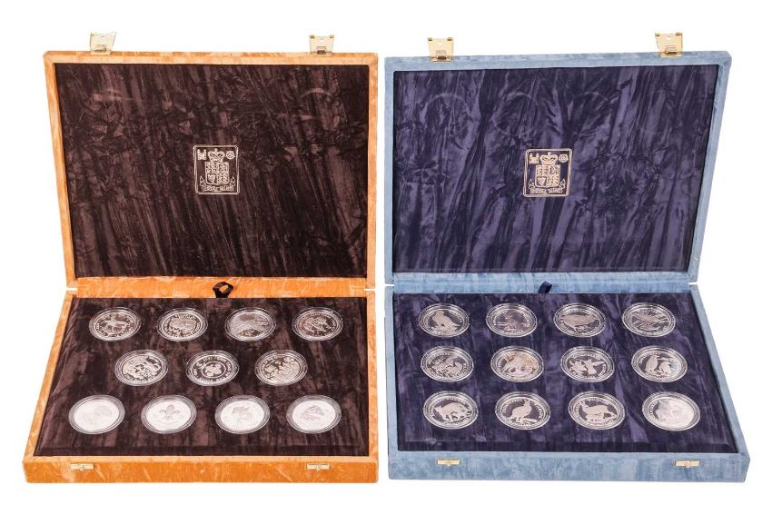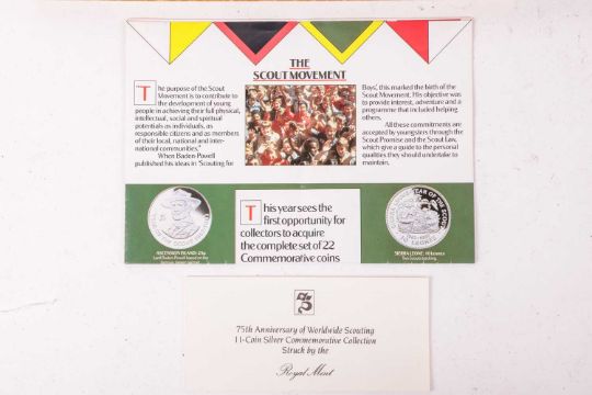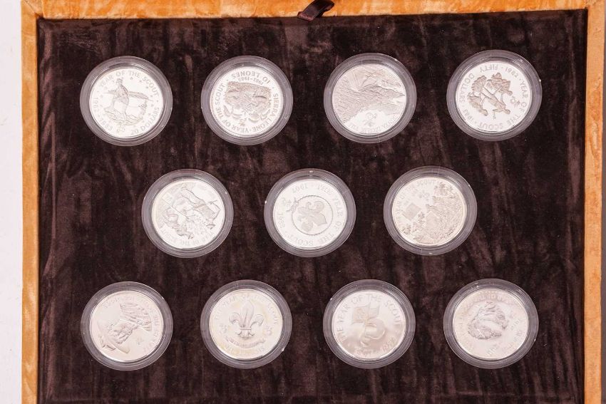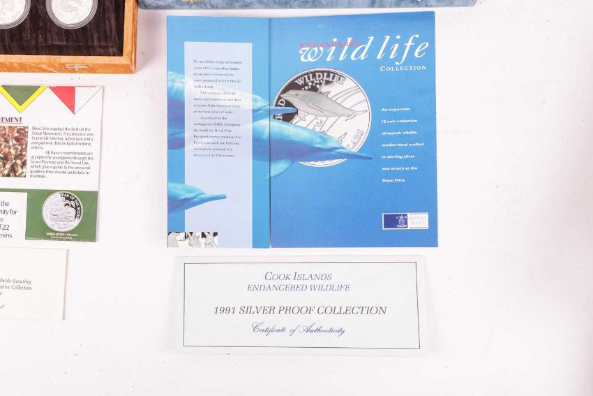 Two sets of Royal Mint silver coins; 1991 75th Anniversary of Worldwide Scouting, comprising 11 coins and 1991 Endangered Wildlife Collection of 12 coins, 19.20 grams each, encapsulated and boxed, weighable 441.6 grams (2).