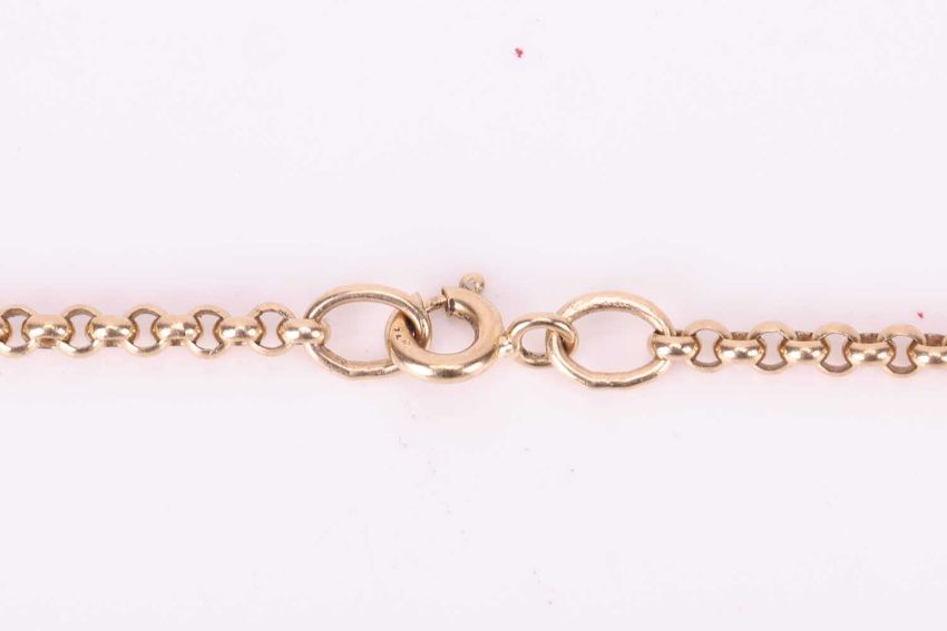 A 9ct gold cable link chain, 42 cm long, 6.3 grams; together with a rope twist chain with barrel clasp, unmarked, testing as 18ct gold, 44cm long, 5.1 grams (2).