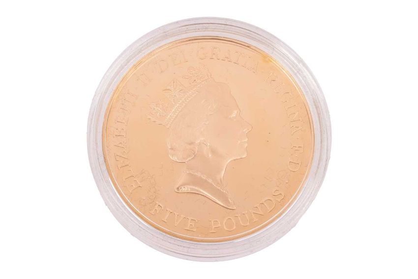 Queen Elizabeth II 70th Birthday gold proof crown, 22ct gold, diameter 38.61 mm, 39.94 grams, encapsulated to fitted box with papers.