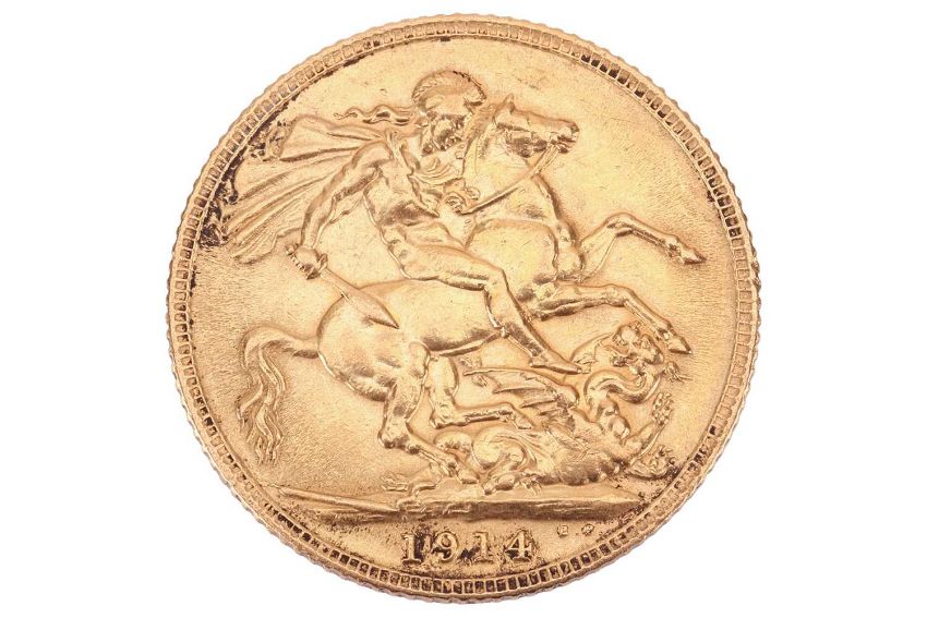 A George V full sovereign, dated 1914, obverse bare head.
