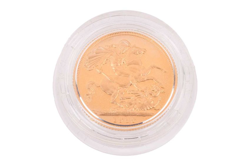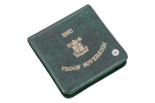 1980 Proof Sovereign, 22ct gold, diameter 22.05 mm, 7.98 grams, encapsulated to fitted box.