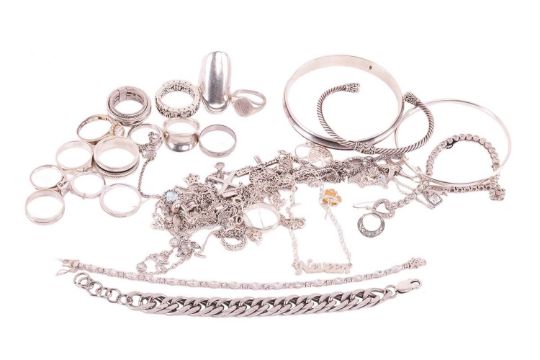 A large quantity of jewellery; to include a Vivienne Westwood bracelet and a Clocks and Colours ring, together with other items comprising: rings, bracelets, earrings and pendants, majority stamped 925, total weight 284.4 grams.