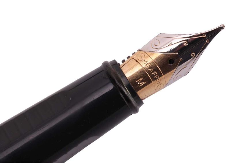 A Cartier Love ballpoint pen in burgundy casing; a Mont Blanc Meisterstruck 149 fountain pen, with bi-coloured gold nib; a Shaeffer, a Waterman anda Parker pen, and a yard-o-lead silver propelling pencil. (6)