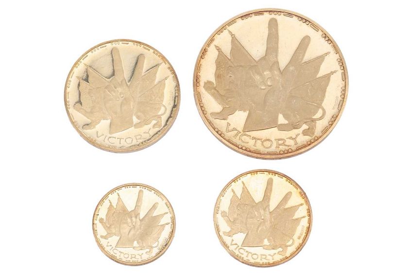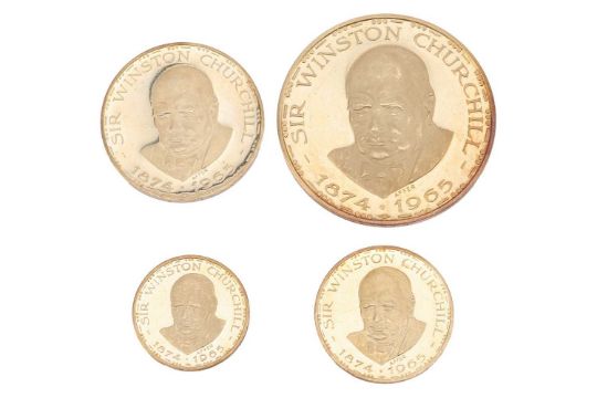 A set of four 1965 Churchill 'Victory' 18ct gold medallions, by Metalimport Ltd., in various sizes and individual presentation folders, British assay marks; Total weight of items 58.1 grams.