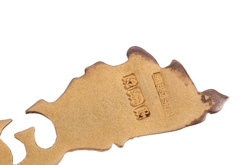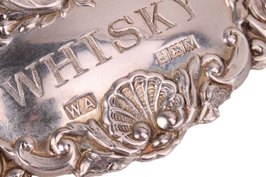 A group of silver items, including a silver gilt Edward VII coronation spoon by S Blanckensee & Sons Ltd in fitted box ; Two pairs of silver nurses buckles, dated 1899; Two silver thimbles, one Chester 1893, the other Birmingham 1886; A silver ice filter by Hilliard & Thomason, Birmingham 1890; Four silver decanter labels, one for madeira by Joseph Craddock & William Ker Reid, London 1821, another for whisky by William Adams, Birmingham 1972, another for gin by Yapp & Woodward, Birmingham 1841 and an additional label for madeira by Edward Mayfield, London 1799; Two silver initial pendants; Gross weight 216.0 grams.