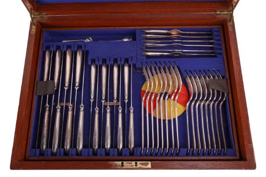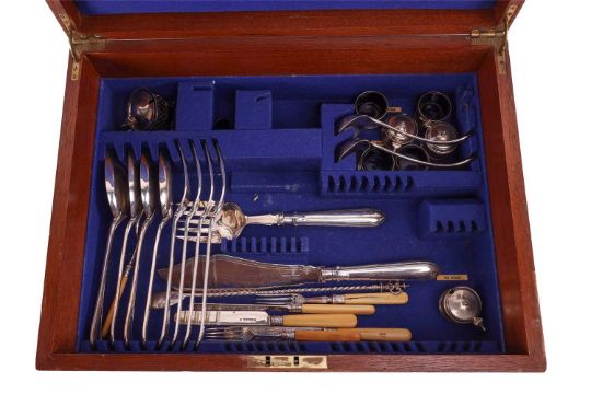 Two silver-plated canteens in brass-bound oak boxes, together with a small quantity of silver-plated table wares.