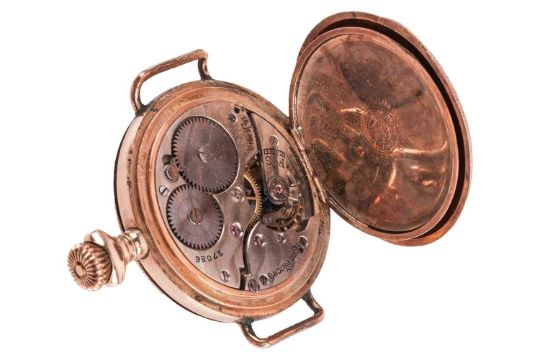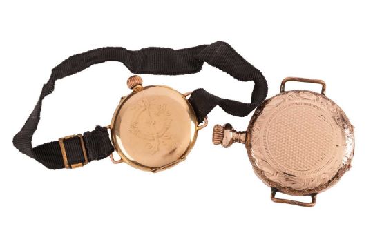 An 18ct yellow gold manual wind watch, not in working order, on a black ribbon strap, together with a Rode manual wind gilt pocket watch, converted to a wristwatch, not in working order, without strap; total weighable: 18.9 grams.