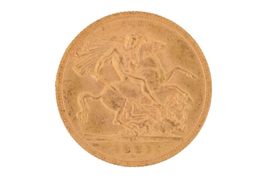 A 1931 George V South Africa mint full sovereign, bare head to the left.