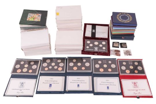 A large collection of coins; including boxed proof sets, old coins and decimal coins, majority uncirculated.