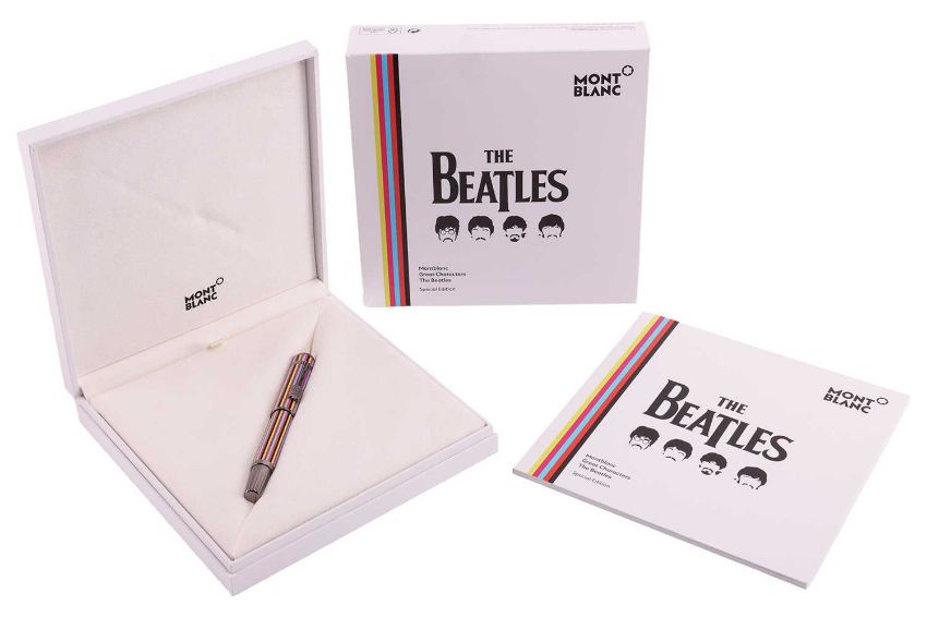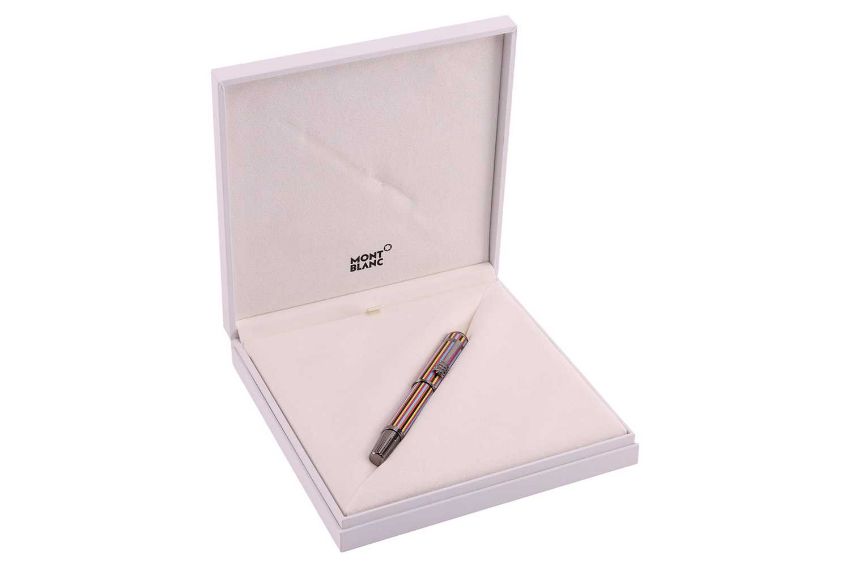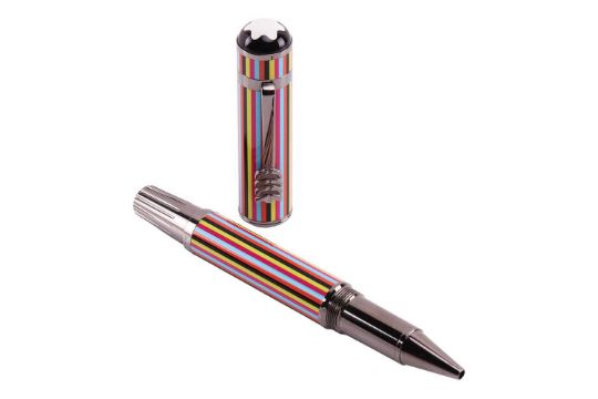 Montblanc - The Beatles special edition rollerball pen from the Great Characters collection, with a polychromatic striped lacquer barrel.