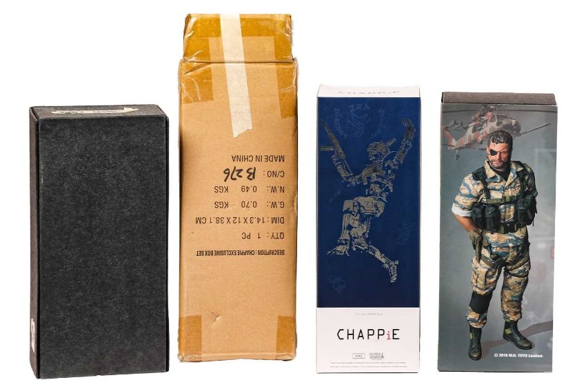 A Threezero Chappie 1:6 scale collectible figure, in original box with outer carton, together with a WJL Toys Fight For One's Own Disguiser 1:6 scale collectible figure, in original box, a Unbranded Imortals figure with accessories and a jho Artworks Custom Blade II Jared Nomak 1:6 scale collectible figure, in original box