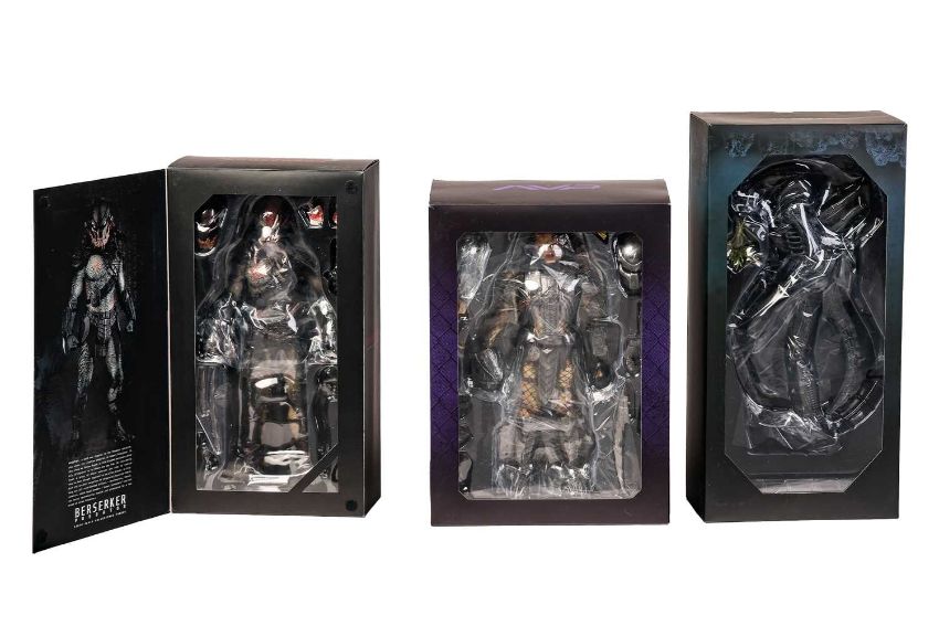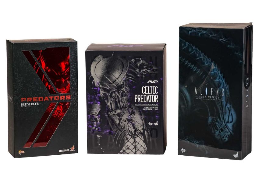 A Hot Toys 1:6 scale collectible Aliens figure, 'Alien Warrior', MMS 354, together with an Aliens vs Predator 'Celtic Predator' Collector's Edition, MMS221 and a Predators 'Beserker Predator' Collector's Edition, MMS138, (missing trophy skull), each in original outer shipping carton, believed to have been previously displayed.