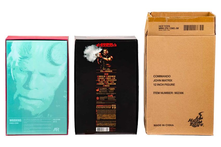 A Hot Toys 'Commando John Matrix' 1:6 scale figure, MMS276, boxed with outer carton, together with an Artoys 'Hellman' 1:6 scale figure, boxed (no carton), both appear complete, but likely to have been previously displayed.