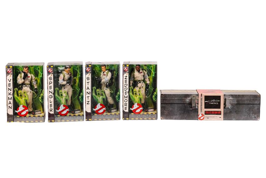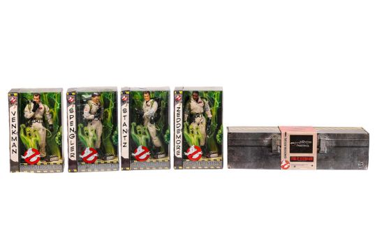 Ghostbusters: a set of four Matty Collector scale figures, 'Venkman', 'Zeddemore', 'Stantz' and 'Spengler', together with a Hasbro 'Spengler's Neutrona Wand' each unopened in original box, the latter with shipping carton.