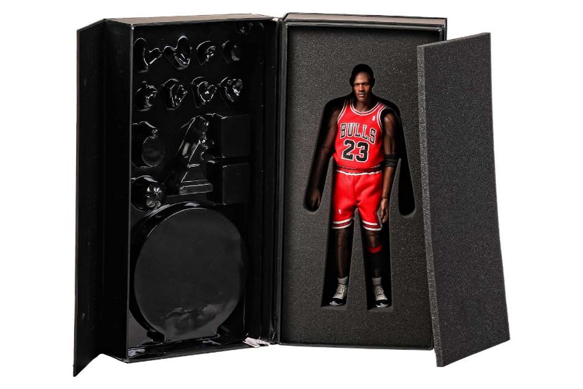 An Enterbay Michael Jordan 1:6 scale collectible figure, in original box, appears complete but likely previously displayed.