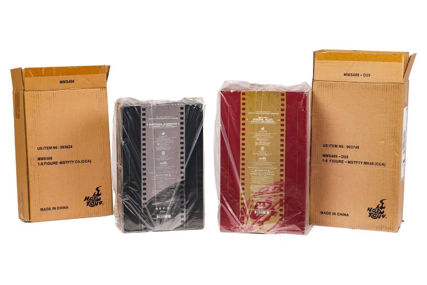 A Captain America Hot Toys Concept Art Version 1:6 Figure Set, MMS488, unopened in sealed bag and with original outer carton, together with an Iron Man Hot Toys Iron Man Mark XLVI Concept Art Version 1:6 Figure Set, MMS489, unopened in sealed bag and with original outer carton.