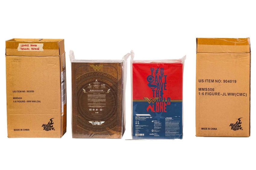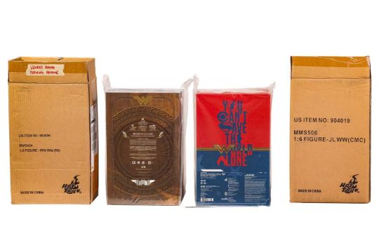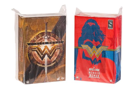 Wonder Woman: two Hot Toys 1:6 scale collectible figures, 'Comic Concept Version' and 'Training Armor Version' each unopened in sealed bag and with original outer shipping cartons.