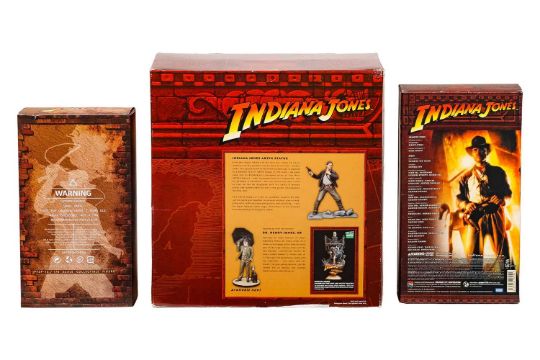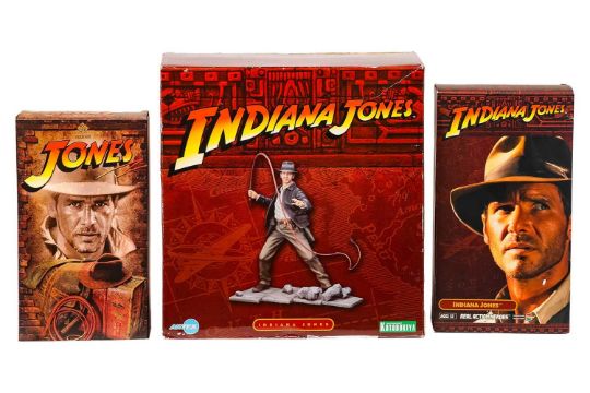 Indiana Jones: a Kotobukia ARTFX Statue, together with a Takara Tomy Indiana Jones scale action figure and a Present Toys 1:6 scale figure, PTSP-12, each in original box.