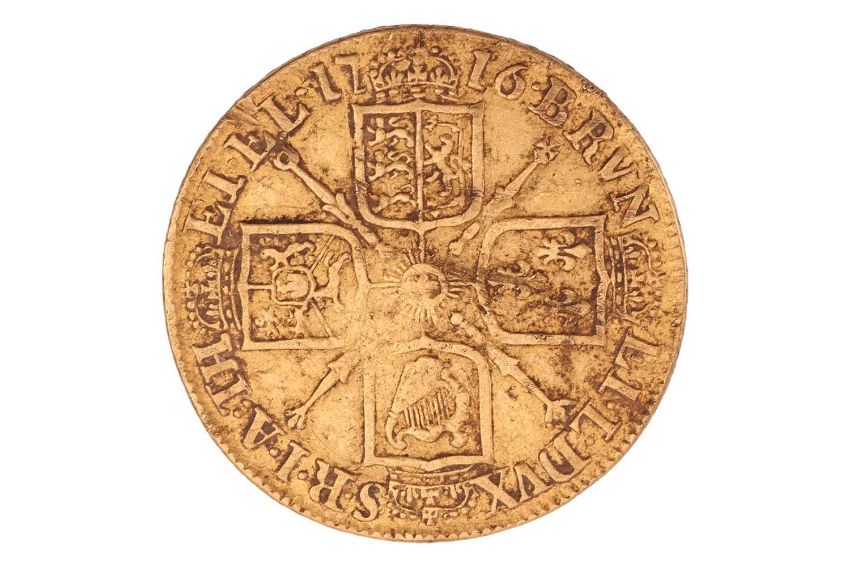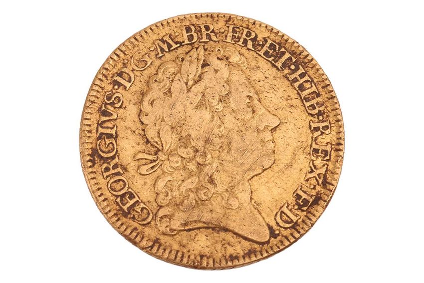 A George I guinea, 1716, fourth bust, crowned cruciform shields, sceptres in angles, milled edge, 8.3 grams