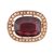 A garnet and seed pearl brooch; comprising an oval mixed-cut pyrope-almandine garnet, measuring approximately 19.5mm x 14.8mm, centrally-set in a millegrain-edged bezel, with a seed pearl surround, in yellow metal surface testing as 9ct, with C-clasp pin fitting to the reverse, 7.9 grams.