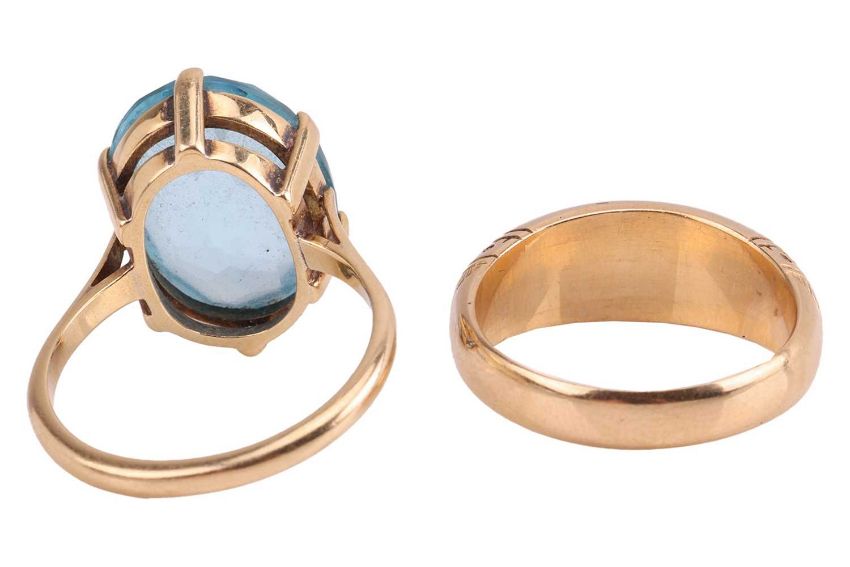 Two rings weighing 10.0 grams together.