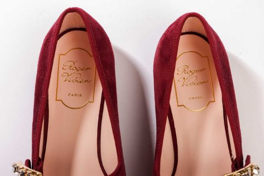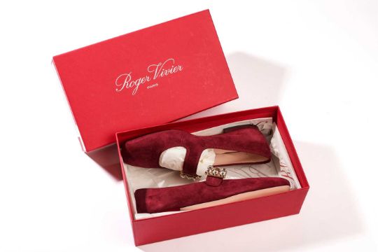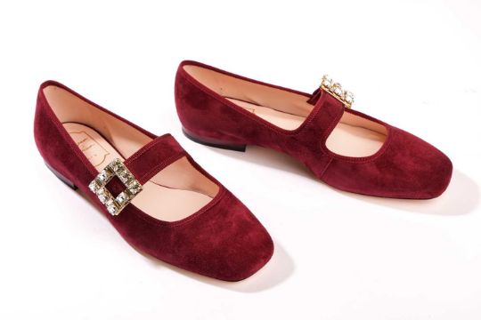 Roger Vivier - a pair of Tres Vivier Strass B Babies 10 ballerina flat in plum velvet. (size 39.5)