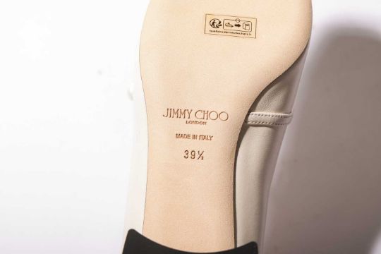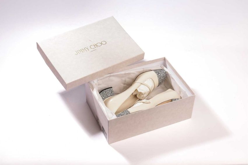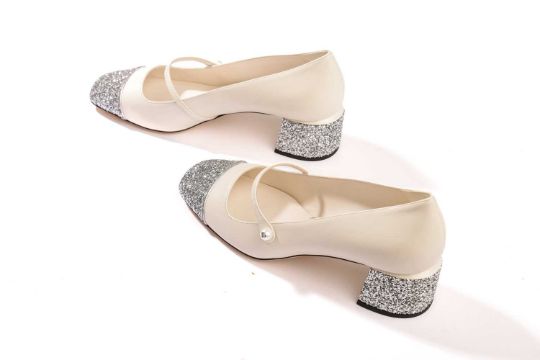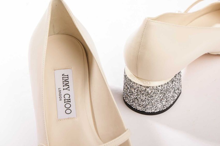 Jimmy Choo - a pair of Elisa 45 in cream leather with silver glitter. (size 39.5)