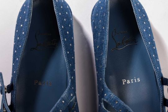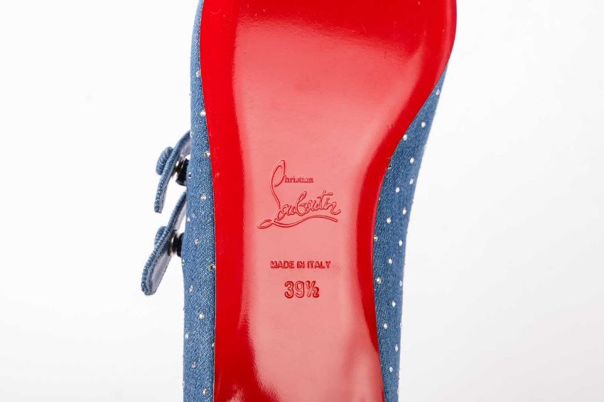 Christian Louboutin - a pair Sweet Jane in blue shade on denim with crystals. (size 39.5)