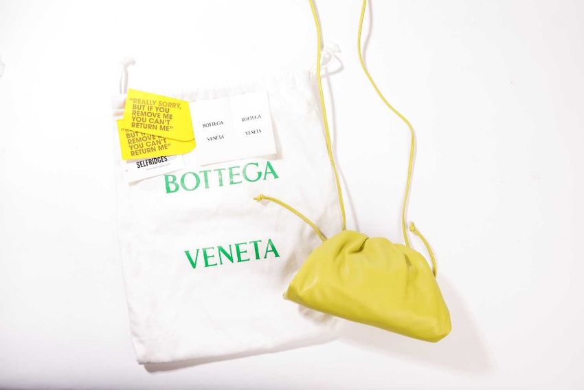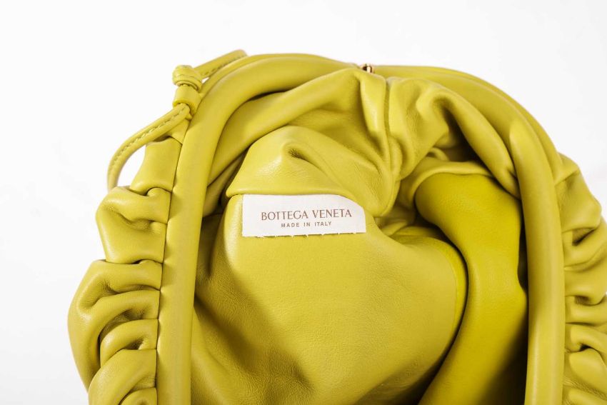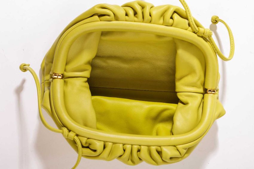 Bottega Veneta by Daniel Lee - The Mini Pouch crossbody bag in lime lambskin leather.