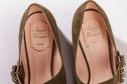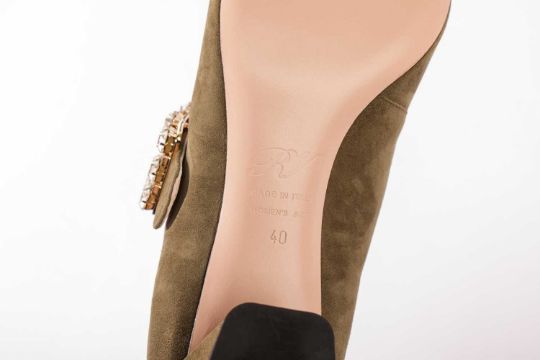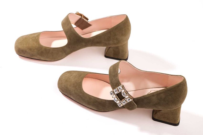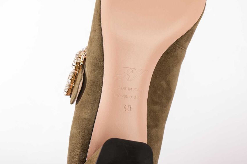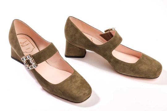 Roger Vivier - a pair of Tres Vivier Strass babies 45 pumps in olive suede. (size 40)