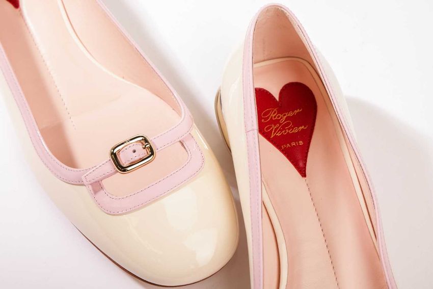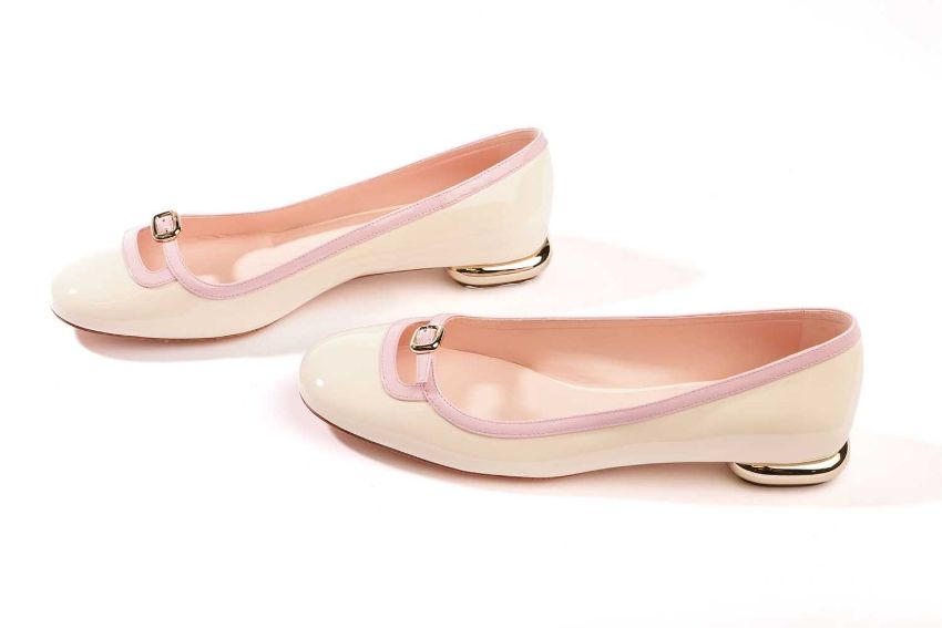 Roger Vivier - a pair of Choc B Mini ballerina flats in pink/cream patent leather. (size 39.5)